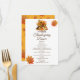 Menú de cena de Acción de Gracias con diseño rústico de cosecha y hojas de otoño.