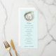 Muestra tu menú de la recepción de la playa con este hermoso menú de la cena formal en tablas de surf. Este diseño tiene una acuarela que representa el paisaje de una playa tropical con decoraciones navideñas. Los colores utilizados son el azul pizarra, el verde del bosque, el marfil y el bronceado.