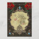 El marco ostenta un diseño opulento que rebosa elegancia y sofisticación. La estructura básica del marco es de un tono profundo y rico que muestra perfectamente los adornos metálicos. En las esquinas superiores del marco se encuentran magníficos conjuntos de rosas rojas brillantes, cuyos pétalos de terciopelo crean un contraste vívido con los elementos metálicos y un sentido de lujo y estilo.