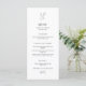 A modern and elegant wedding menu featuring a clean black and white layout with a personalized monogram at the top. The tall 4×9 format creates a refined, editorial presentation, while the minimalist typography keeps every course clear and easy to read. Personalize with your names, date, and menu selections to create a polished finishing touch for your reception tables.