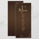 Display your wedding feast in style with this elegant long wedding menu card. Featuring delicate golden fairy lights over a rich chocolate brown background, this design includes a modern monogram and clear sections for starters, mains, salads, and desserts. Perfect for rustic barn weddings, country chic receptions, or outdoor starlit dinners.
