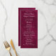Set a refined tone for your pre-wedding celebration with this elegant rehearsal dinner menu featuring a rich berry velvet–style texture. Designed with graceful script typography, classic serif lettering, and delicate ornamental accents, this menu coordinates beautifully with formal and romantic wedding stationery. The vertical layout clearly presents courses and beverages while maintaining a luxurious, balanced look that works perfectly for plated dinners, family-style meals, or restaurant receptions. Ideal for fall and winter weddings, evening events, and traditional celebrations, this rehearsal dinner menu adds a polished finishing touch to place settings or tabletop displays and pairs seamlessly with matching invitations, programs, and signage.