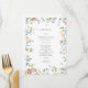 Add a romantic, garden-inspired touch to your reception tables with this elegant wildflower wedding menu card. Featuring delicate watercolor blooms in soft blush, blue, and golden hues at the top and bottom, this design beautifully frames your menu selections with timeless floral charm.