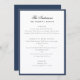 Complete your wedding tablescape with the Elegant Family Name Blue Frame Wedding Dinner Menu. This sophisticated design features your family name in graceful calligraphy script, beautifully framed by a blue border that blends timeless elegance with a modern touch. The minimalist layout and refined typography create a polished look perfect for contemporary or classic celebrations alike. All text elements and colors are fully customizable, allowing you to tailor every detail to match your wedding style and menu perfectly.