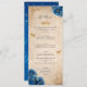Celebrate in style with custom menus designed for a royal blue and gold theme - a beautiful choice for blue rose weddings, a princess quinceañera, glamorous sweet 16 birthday party, once upon a time bridal shower, baby shower, or any event with a fairytale touch. Featuring original watercolor art by Raphaela Wilson, the unique design highlights deep sapphire blue roses paired with luxurious faux gold accents over a softly aged scroll parchment paper texture for a vintage yet regal feel. A gold princess tiara / queen crown, faux sparkling butterfly confetti, and intricate gown inspired filigree borders bring the personalized menu card to life with storybook elegance. This easy to edit DIY template allows you to personalize every detail - from your name and event title to your dinner selections. You can also fine-tune the colors, calligraphy script and modern typography, and overall layout to match your desired mood, whether it’s chic and modern or richly romantic. Category: floral watercolor quinceanera menus with blue roses; elegant wedding menus; and botanical rehearsal dinner wedding menus. Royal blue quinceanera theme colors: dark blue, royal blue, navy, light brown, tan, ivory white, beige, champagne yellow gold, and black.