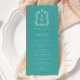 Menú Elegant Monogram Crest Turquoise White Wedding