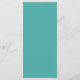 This elegant vintage-inspired wedding menu design features a pair of white monogram initials in open serif font above and below a dividing line and encircled by a line art botanical crest on a turquoise background. The back of the card is solid turquoise.
