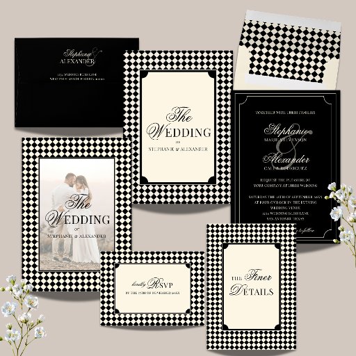 Vintage Black Ivory Checkered Old Money WeddingDiseñado por Jen Mercado