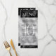 Añada sofisticación a las celebraciones del décimo aniversario del boda con este menú de la cena, que incluye elegantes letras y confetti hexagonal en Relieve metalizado de lata y fondo negro. Personalizar con los nombres de la pareja, fechas de matrimonio, detalles del lugar, elementos del menú y mensajes de felicitación. Diseño © W.H. Sim. Ver más en zazzle.com/expressionsoccasions