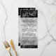 Añada sofisticación a las celebraciones del 25º aniversario del boda plateado con este menú de la cena, que incluye elegantes letras y confetti hexagonal en Relieve metalizado plateado y fondo negro. Personalizar con los nombres de la pareja, fechas de matrimonio, detalles del lugar, elementos del menú y mensajes de felicitación. Diseño © W.H. Sim. Ver más en zazzle.com/expressionsoccasions