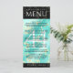 Añada sofisticación a las celebraciones del 44º aniversario del boda turquesa con este menú de la cena, que incluye elegantes letras en mármol amarillo, fondo azul verdoso y negro. Personalizar con los nombres de la pareja, fechas de matrimonio, detalles del lugar, elementos del menú y mensajes de felicitación. Diseño © W.H. Sim. Ver más en zazzle.com/expressionsoccasions