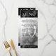 Añada sofisticación a las celebraciones del 70 aniversario del boda de platino con este menú de la cena, que incluye elegantes letras y confetti hexagonal en Relieve metalizado de platino y fondo negro. Personalizar con los nombres de la pareja, fechas de matrimonio, detalles del lugar, elementos del menú y mensajes de felicitación. Diseño © W.H. Sim. Ver más en zazzle.com/expressionsoccasions