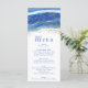 Rellene su mesa boda con este elegante menú de color azul y oro. Con sofisticados acentos de bandeja de oro y ricos remolinos azul marino, este diseño destaca sus platos. Ideal para bodas formales, banquetes y celebraciones elegantes, le da un toque de lujo a su decoración de eventos.