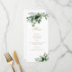 Nuestra tarjeta de menú para cena de boda de Lujuriosa Vegetación y Follaje es perfecta para una boda elegante. El diseño romántico moderno cuenta con un marco boho de hojas verdes y vegetación frondosa en tonos botánicos de eucalipto, verde, menta y acentos blancos crema. Este menú se puede utilizar para una recepción de boda, cena de ensayo o cualquier evento. Todo el brillo y el oro es simulado.