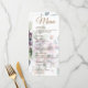 Presentamos nuestra minimalista y moderna carta de menú boda, con flores de bonito en hojas violetas y verdes y más, con un elegante fondo, creando un aspecto limpio y elegante para su día especial.