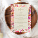 Menú Elegante acuarela rosa Floral Boda personalizada
