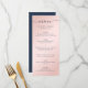 Elegante menú de boda en azul marino y rosa con una fuente de letra moderna. Artículos coincidentes disponibles.