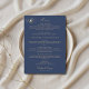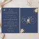 Menú Elegante Boda azul de la Marina de Monograma Oro M