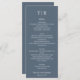 El elegante menú Minimalista del Boda Dusty Blue ofrece un ambiente refinado y elegante. Con un suave fondo azul polvoriento con un crujiente texto blanco, este diseño muy sencillo incluye un espacio en la parte superior para las iniciales de la pareja, seguido de secciones claramente organizadas para aperitivos, ensaladas, entrantes y postres. En la parte inferior hay una zona de personalizable para los nombres de la pareja y la fecha de boda. Perfecto para los bodas modernos, elegantes o románticos, la carta mezcla sofisticación y sencillez, añadiendo un toque atemporal a la decoración de la recepción.