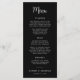 Esta tarjeta de menú boda incluye un guión de caligrafía que le añade un toque de elegancia a su tema blanco y negro. Los menús se muestran de forma creativa en un diseño minimalista, lo que permite a los clientes explorar fácilmente las delicias culinarias que han planeado para su celebración especial.
