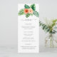 El diseño de la carta le da un toque moderno y elegante a su boda, con sus hojas tropicales de acuarela y sus flores de hibisco sobre un fondo blanco. El lado inverso, de color verde profundo, complementa los temas de las bodas tropicales, de playa o de destino con gusto.