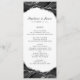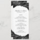 Proporcione a sus huéspedes este elegante diseño de menú casero con los tonos clásicos de agate negro, blanco y gris con venas metálicas de Relieve metalizado plateado. Personalizar con sus nombres, fecha de boda y opciones de menú.