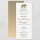 Menú boda blanco sencillo, elegante, moderno y minimalista con elefante monograma único de Relieve metalizado dorado, símbolo de amor, fertilidad y buena suerte. La elección perfecta para bodas elegantes y contemporáneos