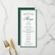 Eleva la recepción de su boda con este menú de Boda de Monograma Escudo Botánico Elegante y Moda verde esmeralda, diseñado para impresionar con su sofisticación atemporal. Con una elegante paleta de colores blanco y negro, este menú muestra su monograma personalizado envuelto en un delicado escudo botánico en la parte superior, añadiendo un toque personalizado y refinado a la configuración de su mesa.