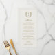 Elegante menú clásico de Boda de Monograma Escudo Dorado. El menú clásico de boda, con un diseño elegante, presenta un fondo de marfil de moda y un texto dorado elegante. El menú boda está decorado con un bonito monograma. Es perfecto para celebraciones bodas de cualquier estilo.