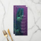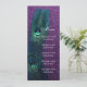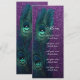 Hermoso fondo brillante de purpurina morada con tarjeta de menú de boda y recepción de pluma de pavo real azul turquesa elegante. Esta elegante invitación de boda de pavo real azul turquesa y púrpura se personaliza fácilmente para su evento. Puede eliminar la imagen de fondo de la parte posterior si desea elegir su propio color de fondo sólido, como azul turquesa o púrpura para que coincida con la parte frontal.