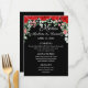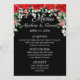 Captura el amor y los recuerdos de tu gran día con este elegante diseño. Con un llamativo fondo negro adornado con profundas rosas rojas y una suave vegetación, este diseño le da un toque romántico y atemporal a su celebración.
