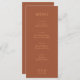Este impresionante y moderno menú elegante Minimalista Boda Terracota muestra la belleza de la simplicidad y la sofisticación. El rico matiz de terracota le aporta un toque de calidez a su día especial, por lo que es perfecto para una boda en otoño. Con un diseño elegante y una estética mínima, este menú de gama alta incorpora la combinación perfecta de clase y estilo. La cuidada tipografía eleva el aspecto general, lo que le da un toque de elegancia inolvidable. Perfecto para un boda de otoño, boda de verano, boda de primavera, boda boho, boda rústico o cualquier boda moderno. Para ver los elementos que coincidan, visite la colección de invitaciones a la boda moderna de Terracota.