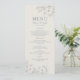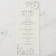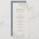 Menú boda vintage, boho, floral y polvoriento azul con elegante perwinkle y sencillo guión manuscrito.