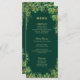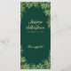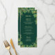 Los menús de la cena son de color verde esmeralda y boda dorado y están decorados con elegantes eucaliptos en ambos lados. Escriba sus nombres, fechas y cursos para crear elegantes menús bodas para un boda de tonos de joyas botánicas en primavera, verano o otoño.