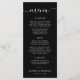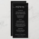 Este elegante diseño de menú de bodas a medida complementa una sofisticada celebración con su llamativo fondo negro y su crujiente tipografía blanca. Un guión artístico resalta el título, mientras que los tipos de letra claros serif y sans-serif presentan maravillosamente las selecciones culinarias de cada curso. La refinada distribución ofrece a los huéspedes una guía lujosa y fácil de leer, lo que mejora la experiencia gastronómica con un estilo sobrio.