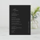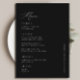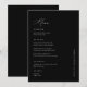 Eleva la recepción con este elegante y personalizado menú de Boda negro caligrafía. Un toque de estilo perfecto, resalta los platos elegidos y añade encanto a la mesa. Ideal para parejas que buscan ideas de menú boda, estas tarjetas de menú boda de personalizable son versátiles tanto para un boda negro como para un boda blanco y negro. Sencillo pero moda, este diseño ofrece una elegancia intemporal, haciendo de los menús bodas una hermosa parte de su celebración.