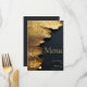 Esta impresionante carta presenta una lujosa textura de Relieve metalizado dorado, con un elegante fondo negro y una elegante tipografía dorada. Ideal para bodas, banquetes o cenas formales, este diseño complementa a la perfección los temas modernos y de gama alta. Muestra el menú del evento con este elegante y sofisticado material de papelería.