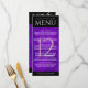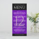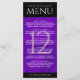Añada sofisticación a las celebraciones del 12º aniversario del boda de seda con este menú de la cena, que incluye elegantes letras en lujosos fondos de seda violeta y negro. Personalizar con los nombres de la pareja, fechas de matrimonio, detalles del lugar, elementos del menú y mensajes de felicitación. Diseño © W.H. Sim. Ver más en zazzle.com/expressionsoccasions