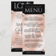 Añada sofisticación a las celebraciones del 46º aniversario del boda de perlas con este menú de la cena, que incluye elegantes letras y perlas con aromas rosas y negras. Personalizar con los nombres de la pareja, fechas de matrimonio, detalles del lugar, elementos del menú y mensajes de felicitación. Diseño © W.H. Sim. Ver más en zazzle.com/expressionsoccasions