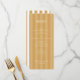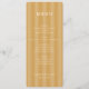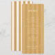 Este elegante menú de boda presenta un diseño vertical con un fondo cálido de color amarillo dorado acentuado por franjas más oscuras de amarillo espaciadas uniformemente. El diseño utiliza una fuente clásica con serifas para los títulos y elementos del menú, creando un aspecto sofisticado y formal, mientras que los nombres en la parte inferior están estilizados en una fuente de escritura íntima. La paleta de colores de tonos dorados transmite una sensación de lujo y calidez, perfecta para una experiencia gastronómica refinada. Las secciones personalizables permiten la personalización, lo que la hace ideal para parejas que planean su día especial.