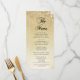 Tarjeta de menú de cumpleaños 90 elegante. Diseño clásico en oro falso brillante y negro. Características tipografía fuente script y confeti. Perfecto para una celebración de cumpleaños de mujeres con estilo. Personalice con sus propios detalles. Envíeme un mensaje si necesita una edad personalizada.