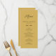 Esta moderna carta de menú de bodas de otoño minimalista ofrece un diseño sencillo y limpio sobre un fondo dorado. El diseño ofrece espacio para añadir los elementos del menú de la recepción nupcial junto con los nombres de la novia y del novio y la fecha de su boda.