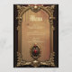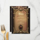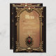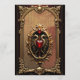 Elegante emblema del corazón de lujo.El diseño presenta un marco dorado ornamentado y arcado contra un fondo marrón degradado. El marco está muy bien decorado con flores de estilo barroco. Desde la parte superior del arco se colgan delicadas cadenas doradas con lágrimas. En el centro inferior, un marco dorado más pequeño, de estilo similar, muestra un emblema rojo del corazón flanqueado por serpientes aladas. El ambiente general es lujoso y decorativo.