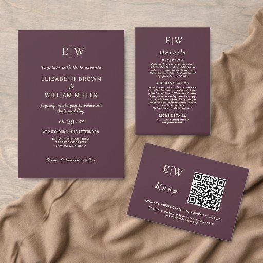 Menú Elegante Laca Sencilla de Cerezo, Boda de Monogram