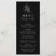 Diseñado para coordinar con nuestra elegante colección de bodas de la Luna Botánica y las Estrellas, este menú boda de boho incluye un ilustracion de arte de línea blanca de una luna adornada con estrellas y follaje sobre fondo negro. Personalice el menú boda de luna blanca y negra con sus nombres, fecha de boda y ofertas de menú seleccionadas.