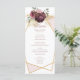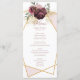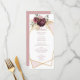 Elegante diseño con detalles de menú con polvorientas letras en rosa sobre un fondo blanco y crujiente rodeado por un marco geométrico dorado adornado con un grupo de flores en rosa rosa y polvoriento con una espoleta de polvo purpurina dorado. Al hacer clic en el vínculo personalizar, puede cambiar los nombres y la fecha. Forma parte de una elegante suite boda que puede ser totalmente personalizada.
