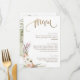 Menú atractivo que también se puede usar como tarjeta de invitado, reemplazando su(s) nombre(s) en la parte posterior por nombre de invitado y agregando su(s) nombre(s) en el texto marcado arriba en lugar de fecha. Diseño elegante con banana y hojas de palmera secas, elementos florales y detalles modernos de caligrafía escrita a mano. Elegante, limpio y sencillo, de estilo contemporáneo. Posibilidad de añadir sus propios detalles del menú. Si es necesario, puede ajustar el espacio de texto, el tamaño o el estilo seleccionando más personalizar. Delante con exquisito verdor y florido rincón de detalles a la izquierda. De vuelta con un marco floral y verde geométrico elegante, con manchas de color verde delicado que caen detrás. Parte de nuestra "Colección Verde Floral de hojas de palmera" con una variedad de productos de coordinación disponibles.