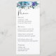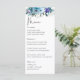 Elegante menú boda floral azul polvoriento primaveral. Aumente su experiencia boda con este menú único inspirado en las flores silvestres, adornado con delicados florales azules, púrpura y lilas. Este diseño, con elegantes acuarelas y exuberante vegetación, refleja la belleza de un prado primaveral o veraniego. La refinada combinación de escritura fluida y tipografía serif clásica garantiza un diseño sofisticado y legible, mostrando con gusto su menú cuidadosamente seleccionado. Perfecto para los bodas románticos e inspirados en la naturaleza, este menú le da un toque elegante y encantador a su mesa, realzando el ambiente general de su día especial.