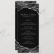 Proporcione a sus huéspedes este elegante diseño de menú casero con los tonos clásicos de agate negro, blanco y gris con venas metálicas de Relieve metalizado plateado. Personalizar con sus nombres, fecha de boda y opciones de menú.