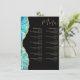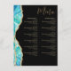 Otro elegante menú de restaurante de Blue Sands Studio. Este menú moderno presenta un diseño de acuarela azul acuario con detalles de brillo dorado falso. Las fuentes serif clásicas se combinan con caligrafía fluida. Plantilla fácilmente editable para insertar las secciones y elementos de su menú. Si necesita ayuda o consejo, por favor envíeme un mensaje de Zazzle.